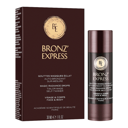 Этот продукт предназначен для создания естественного сияющего загара без воздействия ультрафиолетовых лучей. Academie Bronz’Express Magic Radiance Drops — инновационные капли-сияние, которые позволяют индивидуально регулировать интенсивность оттенка, добавляя их в крем или лосьон. Средство идеально подходит для всех типов кожи и особенно рекомендуется тем, кто хочет получить мягкий бронзовый тон без пятен и полос. Благодаря высокой концентрации активных ингредиентов капли равномерно распределяются, ухаживают за кожей, придавая ей гладкость, увлажнение и эффект солнечного сияния уже после первого применения.