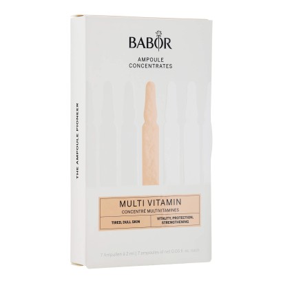Babor Ampoule Serum Concentrates Multi Vitamin – это интенсивный курс ухода, разработанный для восстановления кожи, ослабленной стрессом, неблагоприятной экологией и недостатком витаминов. Ампулы решают проблемы тусклого цвета лица, сухости, потери упругости и первых признаков старения. Формула идеально подходит для кожи, нуждающейся в комплексном питании и защите, а также для тех, кто хочет быстро восстановить свежесть и энергию кожи. Благодаря высокой концентрации активных ингредиентов сыворотка действует как «витаминный коктейль», который укрепляет защитный барьер, улучшает текстуру кожи и придаёт ей здоровое сияние. Активные компоненты заключены в стерильные ампулы, что обеспечивает максимальную сохранность и эффективность формулы, а также быстрый результат уже после первых применений.