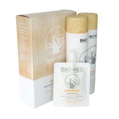 Набор Bao-Med Luxuriate Gift Set предназначен для интенсивного восстановления и питания сухих, повреждённых и ослабленных волос. Он помогает восстановить эластичность и блеск даже после агрессивных процедур — окрашивания, химических завивок или горячей укладки. Благодаря высококонцентрированным формулам, обогащённым натуральными активами, средствами достигается глубокое восстановление структуры волоса и защита от термического и экологического стресса. Формулы из шампуня, кондиционера и маски работают в тандеме, создавая ухаживающий комплекс: мягкое очищение, восстановление баланса влаги и интенсивное питание в заключение.
