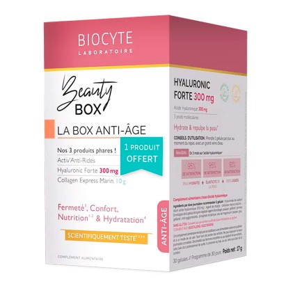 Biocyte Beauty Box – это комплексная пищевая добавка, созданная для замедления процессов старения кожи и сохранения её молодости. Продукт сочетает три этапа ухода изнутри: глубокое увлажнение гиалуроновой кислотой, восстановление структуры кожи с помощью запатентованного комплекса Glycoserum EF® и укрепление коллагенового каркаса за счёт морского гидролизата коллагена. Такая последовательная схема обеспечивает интенсивное питание, повышает упругость, уменьшает выраженность морщин и улучшает общий тон кожи. Подходит для женщин и мужчин, стремящихся поддерживать здоровье и красоту кожи, а также предупреждать возрастные изменения.