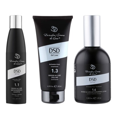 Набор DSD De Luxe Antiseborrheic Trio предназначен для нормализации работы сальных желез и глубокого очищения кожи головы при себорее и жирной перхоти. Набор разработан для людей, страдающих повышенной жирностью кожи головы, зудом, шелушением и потерей свежести волос уже через день после мытья. Комплексное действие шампуня, пилинга и лосьона помогает устранить причины себореи, восстановить баланс микробиома кожи и продлить чистоту волос. Благодаря активным компонентам — кислотам, растительным экстрактам и витаминам группы B — продукты регулируют секрецию себума, очищают поры и улучшают микроциркуляцию, обеспечивая оздоровление кожи головы и ускорение роста волос.