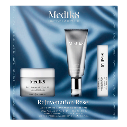 Для продуктов, входящих в состав Medik8 Rejuvenation Reset Kit, не опубликованы единые клинические исследования именно для набора как комплекса, однако эффективность каждого средства подтверждена клиническими данными по ключевым активным ингредиентам. Ретиналь продемонстрировал способность ускорять клеточное обновление и уменьшать выраженность морщин уже через 4–6 недель регулярного применения. Стабильная форма витамина C показала улучшение тона кожи, повышение сияния и антиоксидантную защиту при ежедневном использовании. По отзывам пользователей и косметологов, при применении набора кожа становится более плотной, гладкой и визуально обновлённой, а признаки усталости и фотостарения заметно уменьшаются. Специалисты также отмечают хорошую переносимость средств и выраженный накопительный эффект при курсовом использовании.