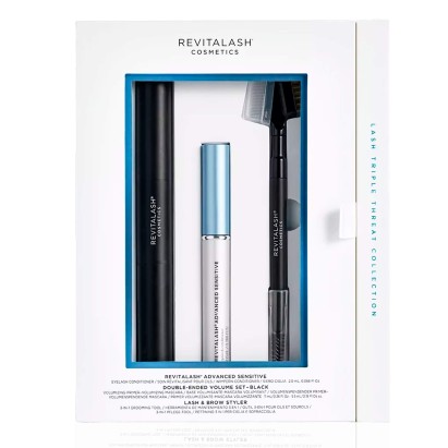 Этот лимитированный набор Revitalash Advanced Sensitive Triple Threat Collection создан специально для бережного ухода за ресницами и чувствительной кожей вокруг глаз. Он предназначен для восстановления, укрепления и защиты ресниц, склонных к ломкости и выпадению, а также для деликатного ухода за кожей, склонной к раздражению. Сыворотка способствует естественному росту и утолщению ресниц, а туш с праймером придаёт им объем, длину и ухоженный вид без утяжеления. Благодаря сочетанию запатентованных технологий и активных компонентов набор делает ресницы густыми, эластичными и защищёнными, обеспечивая здоровый и выразительный взгляд даже при ежедневном использовании.