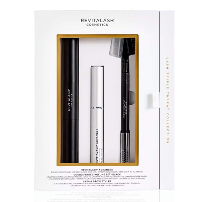 Этот эксклюзивный набор Revitalash Advanced Triple Threat Collection предназначен для комплексного ухода, восстановления и укрепления ресниц. Продукты набора помогают решить основные проблемы — ломкость, ослабление и потерю густоты, характерные для ресниц после наращивания, окрашивания или частого использования декоративной косметики. Сыворотка стимулирует рост, укрепляет фолликулы и делает волоски более плотными и эластичными, а тушь с праймером придаёт ресницам выразительность и объём без утяжеления. Благодаря инновационной формуле, основанной на комбинации пептидов, растительных екстрактов и витаминов, средства обеспечивают видимый эффект уже через несколько недель, делая ресницы длиннее, сильнее и здоровее при регулярном применении.