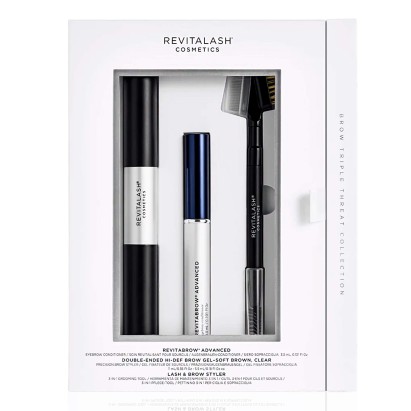 Этот эксклюзивный набор Revitalash RevitaBrow Advanced Triple Threat Collection создан для укрепления, восстановления и моделирования бровей, склонных к истончению и ломкости. Продукты комплекса направлены на стимуляцию роста, повышение плотности и улучшение структуры волосков. Средства подходят для тех, кто хочет вернуть бровям природную густоту после процедур окрашивания, ламинирования или возрастных изменений. Благодаря сочетанию пептидов, растительных экстрактов и витаминов набор эффективно укрепляет волосяные фолликулы, улучшает микроциркуляцию и защищает брови от внешних повреждений, делая их более плотными, эластичными и ухоженными.