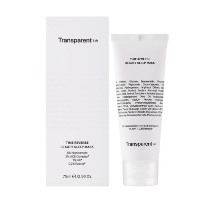Transparent Lab Time Reverse Beauty Sleep Mask — это ночная антивозрастная маска, разработанная для восстановления и омоложения кожи во время сна. Она специально создана для борьбы с признаками старения, такими как морщины, потеря упругости и тусклый тон кожи, и подходит для всех типов кожи, включая чувствительную. Благодаря сочетанию ретинола, ниацинамида, гиалуроновой кислоты и витаминов A, C, E маска работает глубоко в коже, стимулируя обновление клеток, повышая эластичность и увлажнённость. Формула действует в ночное время, когда кожа наиболее восприимчива к активным компонентам, обеспечивая заметное улучшение уже после нескольких применений. Использование маски помогает выровнять тон лица, уменьшить видимость пигментных пятен и придать коже сияющий, свежий вид. Этот продукт идеально подойдёт для аудитории, стремящейся сохранить молодость кожи и замедлить процессы старения.