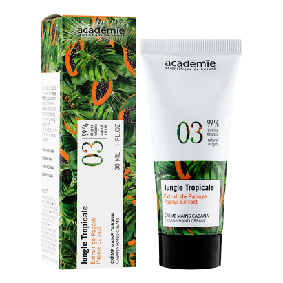 Цей крем для рук створений для інтенсивного живлення, відновлення та захисту шкіри, схильної до сухості та подразнень. Він ідеально підходить для сухої й чутливої шкіри, яка потребує м’якості та комфорту. Academie Jungle Tropicale Cabana Hand Cream глибоко зволожує шкіру, повертає їй еластичність і запобігає відчуттю стягнутості. Завдяки комбінації натуральних олій, рослинних екстрактів і вітамінів засіб живить, пом’якшує та відновлює шкіру рук, роблячи її шовковистою й доглянутою, наче після професійного SPA-догляду.