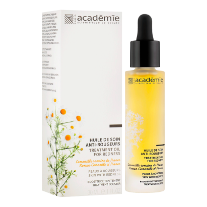 Цей догляд створений спеціально для чутливої та схильної до почервоніння шкіри, яка потребує заспокоєння та захисту. Academie Treatment Oil for Redness ефективно зменшує подразнення, усуває відчуття печіння й дискомфорту, відновлюючи природний баланс шкіри. Олія допомагає зміцнити стінки капілярів і запобігти появі нових почервонінь. Завдяки комплексу натуральних ефірних олій і рослинних екстрактів засіб чинить протизапальну, пом’якшувальну та зміцнювальну дію. Воно глибоко живить шкіру, покращує мікроциркуляцію та повертає їй комфорт, гладкість і здорове сяйво.