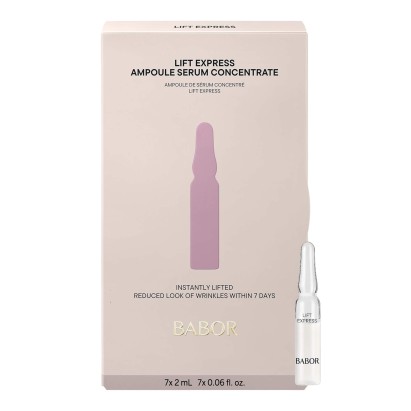 Babor Ampoule Serum Concentrates Lift Express — експрес-ліфтинг догляд, створений для шкіри з вираженими ознаками вікових змін. Ампули допомагають швидко зменшити видимість зморшок, підвищити пружність і повернути шкірі гладкість та тонус. Формула діє як «ліфтинг за 15 хвилин», забезпечуючи миттєвий візуальний результат перед важливою подією та підтримуючи ефект при курсовому застосуванні. Засіб підходить для всіх типів шкіри, особливо при втраті еластичності, тьмяності та нерівній текстурі.