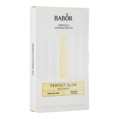Babor Ampoule Serum Concentrates Perfect Glow – це інноваційний догляд для шкіри, створений для миттєвого вирівнювання тону та надання природного сяйва. Ампули допомагають боротися з тьмяністю, нерівністю текстури та першими ознаками втоми шкіри. Формула ідеально підійде для тих, хто хоче освіжити зовнішній вигляд перед важливою подією або включити засіб у регулярний догляд для підтримання рівного, сяючого кольору обличчя. Завдяки активним інгредієнтам, таким як пептиди та перламутрові пігменти, ампули візуально вирівнюють поверхню шкіри, надають їй м’яке світіння та роблять тон обличчя більш однорідним. Результат помітний вже після першого застосування, а регулярне використання підсилює ефект сяйва та покращує загальний стан шкіри.