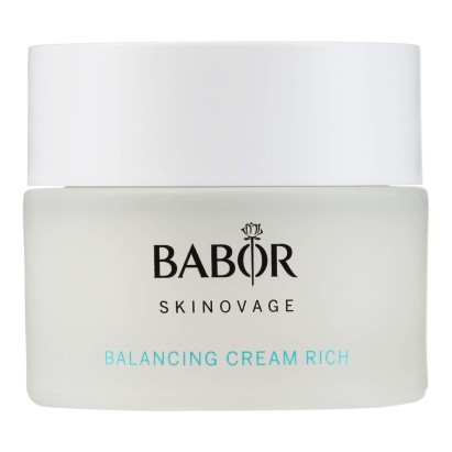 Babor Skinovage Balancing Cream Rich – поживний крем для комбінованої шкіри обличчя, створений для відновлення гармонії та підтримання природного балансу. Він допомагає усунути сухість на щоках і запобігти надмірному жирному блиску в Т-зоні, забезпечуючи рівний та доглянутий вигляд шкіри. Завдяки комплексу активних інгредієнтів крем регулює вироблення себуму, зміцнює захисний бар’єр і інтенсивно живить епідерміс. При регулярному застосуванні шкіра стає м’якішою, зволоженою та стійкішою до зовнішніх факторів, а колір обличчя набуває свіжості й рівномірності.