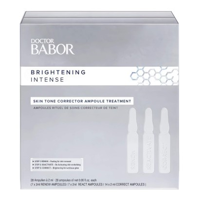 Babor Daily Brightening Intense Skin Tone Corrector Treatment – це ампули для корекції тону шкіри обличчя, розроблені для людей із тьмяним і нерівномірним відтінком шкіри, схильної до пігментації та втрати природного сяйва. Продукт допомагає зменшити інтенсивність темних плям, вирівняти тон і надати шкірі свіжого, здорового вигляду. Завдяки висококонцентрованій формулі активні компоненти проникають у глибокі шари епідермісу, впливаючи на джерела гіперпігментації та зміцнюючи захисні функції шкіри. Регулярне використання дозволяє не лише скоригувати вже наявні недосконалості, але й запобігти появі нових, роблячи шкіру більш гладкою, рівною та сяючою.