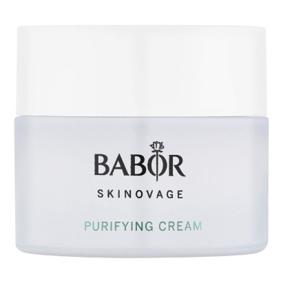 Babor Skinovage Purifying Cream – крем для проблемної шкіри, створений для зменшення висипань та нормалізації роботи сальних залоз. Він підходить для людей із жирною та комбінованою шкірою, схильною до запалень, комедонів та надмірного блиску. Формула спрямована на зменшення видимих недоліків, звуження пор та відновлення чистоти шкіри. Завдяки збалансованому комплексу активних компонентів засіб регулює секрецію себуму, запобігає появі нових запалень і підтримує здоровий мікробіом шкіри. При регулярному застосуванні шкіра стає більш матовою, свіжою та доглянутою, а її тон вирівнюється.
