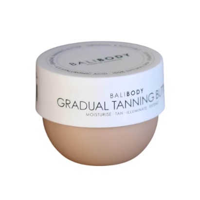 Bali Body Gradual Tanning Butter розроблений для тих, хто хоче досягти природної, рівної засмаги без сонячного впливу. Цей баттер поєднує в собі властивості крему, що доглядає, і автозагара, поступово надаючи шкірі бронзовий відтінок з кожним застосуванням. Він ідеально підходить для людей з сухою та чутливою шкірою, а також для тих, хто віддає перевагу м'якому, поступовому потемнінню шкіри без різких меж і плям. Завдяки поєднанню активних компонентів автозагара зі зволожуючими та антивіковими інгредієнтами, засіб одночасно доглядає шкіру, підвищує її пружність та покращує тон.