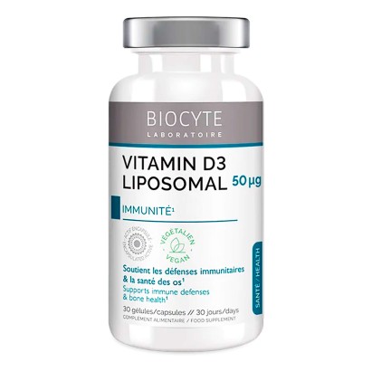 Харчова добавка Biocyte Vitamine D3 Liposomal створена для відновлення дефіциту вітаміну D3, підтримання здоров’я кісток, зубів, імунної та нервової систем. Продукт особливо рекомендується людям, які відчувають нестачу сонячного світла, ведуть малорухливий спосіб життя або дотримуються дієти з низьким вмістом жирів. Ліпосомальна форма вітаміну D3 забезпечує його оптимальне засвоєння в організмі, значно підвищуючи біодоступність порівняно з традиційними добавками. Завдяки такій технології активна речовина захищена від руйнування у шлунку та доставляється безпосередньо до клітин, що забезпечує стійкий ефект і підтримує баланс кальцію та фосфору.