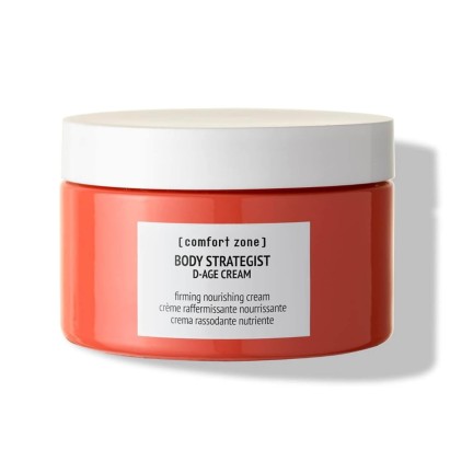 Comfort Zone Body Strategist D-Age Cream - це зміцнюючий антивіковий крем для тіла, розроблений для підвищення пружності, еластичності та щільності шкіри. Він особливо ефективний при ознаках вікових змін, втрати тонусу, сухості та схильності до в'ялості. Ідеальний для догляду за зрілою, сухою та зневодненою шкірою, у тому числі в період після різкого зниження ваги, під час вагітності або в рамках антивікових програм. Завдяки високій концентрації натуральних активних компонентів крем стимулює оновлення шкіри та запобігає руйнуванню колагену, забезпечуючи виражений ліфтинг-ефект. Продукт глибоко живить і відновлює шкіру, роблячи її помітно гладкішою і пружною вже за кілька тижнів застосування.