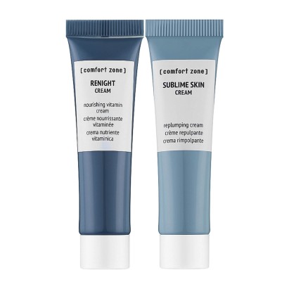 Набір Comfort Zone Daily Care Kit призначений для повноцінного щоденного догляду за шкірою обличчя та включає два міні-продукти: денний крем Sublime Skin Cream та нічний крем Renight Cream. Він розроблений спеціально для підтримки балансу між відновленням та захистом шкіри, забезпечуючи її комфорт, харчування та захист від зовнішніх стресів. Денний крем працює на ущільнення та підвищення пружності шкіри, надаючи їй свіжості та гладкості, а нічний – сприяє глибокому відновленню, заповнюючи нестачу ліпідів та антиоксидантного захисту. Такий формат особливо зручний для подорожей, активного ритму життя чи знайомства із ключовими засобами бренду. Завдяки збалансованим формулам і багатофункціональним компонентам, набір підходить для нормальної, сухої та вікової шкіри, яка потребує щоденної підтримки.