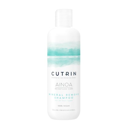 Шампунь Cutrin Ainoa Mineral Remov призначений для професійного глибокого очищення волосся від накопичених мінеральних відкладень, таких як кальцій, залізо, мідь та солі, характерні для жорсткої води. Це особливо актуально для освітленого, фарбованого і пористого волосся, схильного до втрати блиску, небажаних відтінків і зниження сприйнятливості до догляду. Завдяки формулі, що хелатирує, з етидроновою кислотою, засіб ефективно зв'язує і виводить іони металів, вирівнюючи поверхню волосся і готуючи його до наступних процедур. Додаткові компоненти доглядають волосся і шкіру голови, зберігаючи його зволоженим і м'яким. Шампунь рекомендується використовувати перед фарбуванням, реконструкцією або відновленням волосся – він робить колір більш рівним та стійким, покращуючи загальну якість догляду та зовнішній вигляд зачіски.