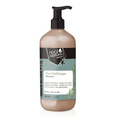 Шампунь проти лупи Real Natura Sem Sal Pro-Anticaspa створений для ефективного очищення шкіри голови, усунення лупи та зменшення свербежу. Він ідеально підходить людям, які страждають на себорейний дерматит, сухі або жирні лусочки, а також тим, у кого виникає відчуття дискомфорту й подразнення шкіри голови. Завдяки активним компонентам формула регулює роботу сальних залоз, бореться з грибковою мікрофлорою та сприяє відновленню природного балансу шкіри голови. При регулярному використанні шампунь усуває видимі ознаки лупи, запобігає її повторній появі та повертає волоссю відчуття свіжості й здоров’я.