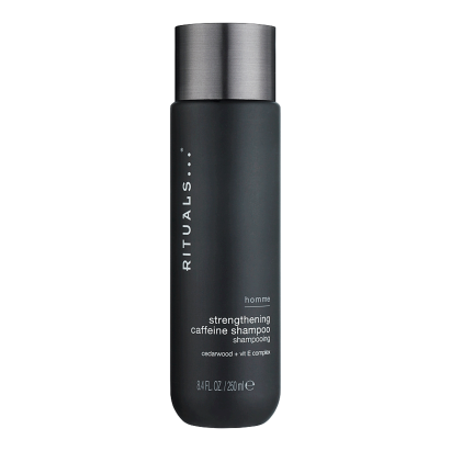 Цей шампунь розроблений для зміцнення волосся та догляду за шкірою голови у чоловіків, які стикаються з ослабленням волосся, підвищеною жирністю або зниженням тонусу шкіри голови. Формула орієнтована на нормальне та схильне до витончення волосся, а також підходить для регулярного використання за активного способу життя. Засіб м’яко очищує волосся і шкіру голови, видаляючи забруднення та надлишки себуму без пересушування. Завдяки поєднанню стимулювальних і доглядових компонентів шампунь підтримує життєвий цикл волосся та допомагає зберегти його доглянутий зовнішній вигляд. Rituals Homme Strengthening Caffeine Shampoo працює за рахунок активації шкіри голови під час миття. Активні інгредієнти впливають переважно на поверхню шкіри, створюючи умови для більш міцного та щільного волосся. Регулярне застосування сприяє відчуттю свіжості, чистоти та доглянутості волосся.