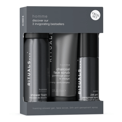 Цей подарунковий набір розроблений для комплексного догляду за шкірою тіла та обличчя чоловіків, яким важливо підтримувати чистоту, свіжість і комфорт шкіри в умовах активного способу життя. Він підходить для нормальної, комбінованої та чутливої шкіри, схильної до забруднень, сухості або подразнення після фізичних навантажень і гоління. Засоби набору ефективно очищають шкіру, підтримують оптимальний рівень зволоженості та допомагають зменшити відчуття стягнутості. Завдяки поєднанню очищувальних, зволожувальних і відновлювальних компонентів Rituals Homme Trial Set 2024 забезпечує поетапну дію, підтримуючи доглянутий зовнішній вигляд шкіри та відчуття комфорту протягом дня.