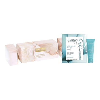 Зволожувальний набір Thalgo Festive Hydra Cracker створений для відновлення водного балансу шкіри, миттєвого відчуття свіжості та підтримання здорового сяйва. Продукт ідеально підходить для зневодненої, втомленої та стресованої шкіри, яка потребує інтенсивного догляду й комфорту. Засоби набору діють синергійно: ніжний скраб делікатно видаляє ороговілі клітини, а тканинна маска глибоко насичує вологою та зміцнює гідроліпідний бар’єр. Завдяки запатентованому комплексу морської води Sève Bleue des Océans та гіалуроновій кислоті шкіра миттєво стає гладкою, пружною й зволоженою зсередини, а її тон і текстура помітно покращуються вже після першого використання.