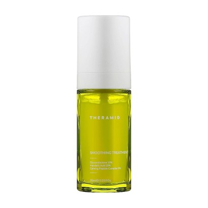 Сироватка Theramid Smoothing Treatment Anti-Aging Serum with Mild Acids for Even Radiance розроблена для м'якого оновлення шкіри, покращення її текстури та вирівнювання тону. Цей засіб ідеально підходить для тьмяної, нерівної, зрілої шкіри, а також для тих, хто стикається з пігментацією, розширеними порами та першими ознаками старіння. Завдяки ретельно збалансованій формулі з м'якими кислотами та пептидами, сироватка забезпечує делікатне відлущування, не порушуючи бар'єрну функцію шкіри. До складу входять мигдальна кислота та глюконолактон, які стимулюють оновлення клітин та покращують мікрорельєф, а також пептидний комплекс, що сприяє відновленню та заспокоєнню шкіри. Формула підтримує оптимальний рівень зволоженості та допомагає відновити захисні функції шкіри.