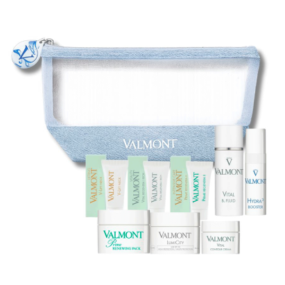 Цей дорожній набір зроблений для комплексного догляду за шкірою обличчя та шиї в умовах стресу, зміни клімату та підвищених зовнішніх навантажень. Він призначений для всіх типів шкіри, включно зі зневодненою, тьмяною, втомленою та шкірою з першими віковими змінами, яка потребує відновлення, захисту й підтримання балансу. Засоби набору допомагають заповнити дефіцит вологи, підвищити щільність і еластичність шкіри, покращити тон і загальну якість шкірного покриву. Valmont Mini Premium Set 3 працює завдяки поєднанню клітинних активів, зволожувальних комплексів, пептидів і антиоксидантів, які підтримують природні процеси регенерації. Активні інгредієнти стимулюють оновлення клітин і зміцнюють захисні функції шкіри. Регулярне використання засобів набору допомагає зберігати доглянутий, свіжий та здоровий зовнішній вигляд шкіри навіть у подорожах.